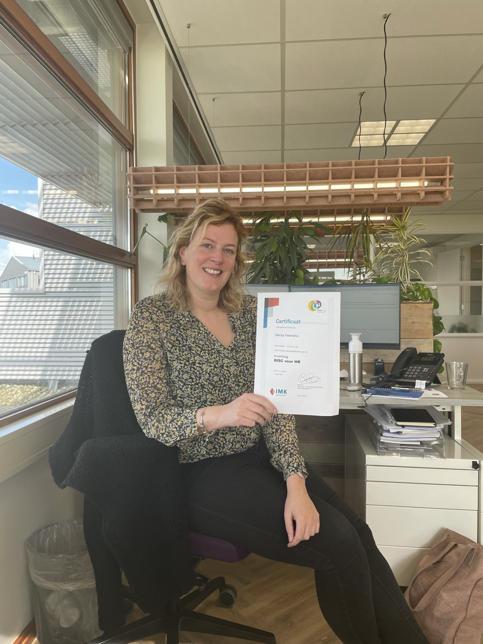 Donderdag was het voor Gerda alweer tijd voor haar laatste training van de DISC. Wederom zagen we haar na de training vol enthousiasme op kantoor. De tweede tevens laatste trainingsdag stond in het teken van het werkomgevingsprofiel (WOP) en het gebruik van DISC als HR hulpmideel. Ze heeft veel handvaten gekregen om het geleerde in de praktijk toe te passen. We vrezen dat we hier meer van gaan horen op kantoor! We feliciteren haar met het bepalen van haar certificaat.