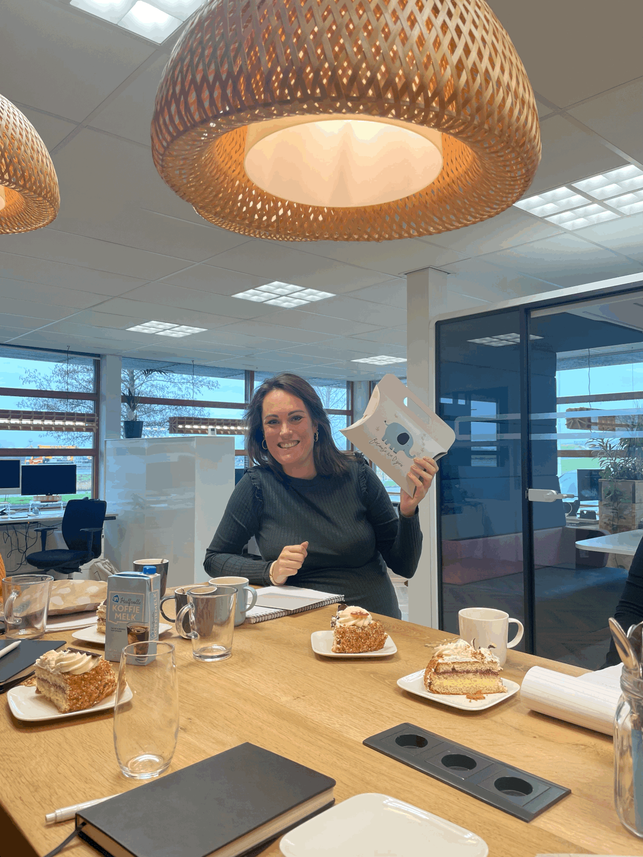 Deze week ook een beetje treurig nieuws… Dit was voor nu de laatste werkweek van onze kartrekker Jantsje Rypma. Ze is namelijk met zwangerschapsverlof. We konden haar niet zomaar de deur uit laten gaan dus we hebben haar afgelopen dinsdag verrast met cadeautjes en gebak. Zo ging ze gister met veel plezier haar zwangerschapsverlof tegemoet!????