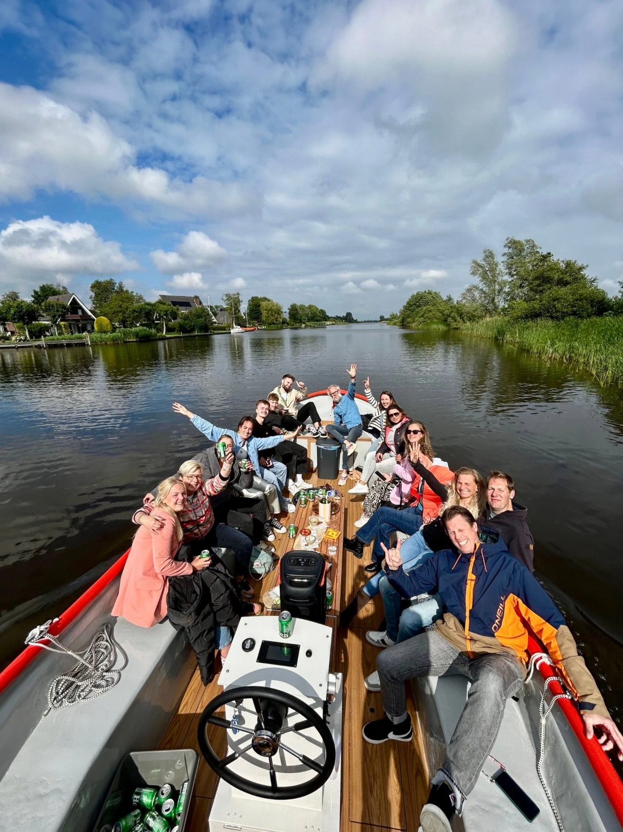 Margreet en Beau trappen ‘m af met de Cake op de Week. Afgelopen vrijdag vielen ze het kantoor van Jooop en Jobz-on binnen, want het was tijd voor een fuifje met het personeel van VONK!, Jooop en Jobz-on! En wat voor een. Waarom? Om te proosten, om elkaar eens beter te leren kennen dan een “goedemorgen” en “hoe is het” bij het koffiezetapparaat. Om het “switchen in de keten” nog meer te smeren: samenwerken is immers het sleutelwoord. Bij de afvaart leek het erop dat de weergoden ons niet positief gezind waren, maar na een aantal spettertjes brak het zonnetje door. Voeg daar nog een paar rijkelijk gevulde borrelplanken en een aantal vloeibare versnaperingen aan toe.. en dan heb je genoeg ingrediënten voor een geslaagde middag op de Friese wateren. Bedankt Fier & Bootverhuur Theo de Vries (en scheepsvrouw Julien) voor de fijne middag/avond!