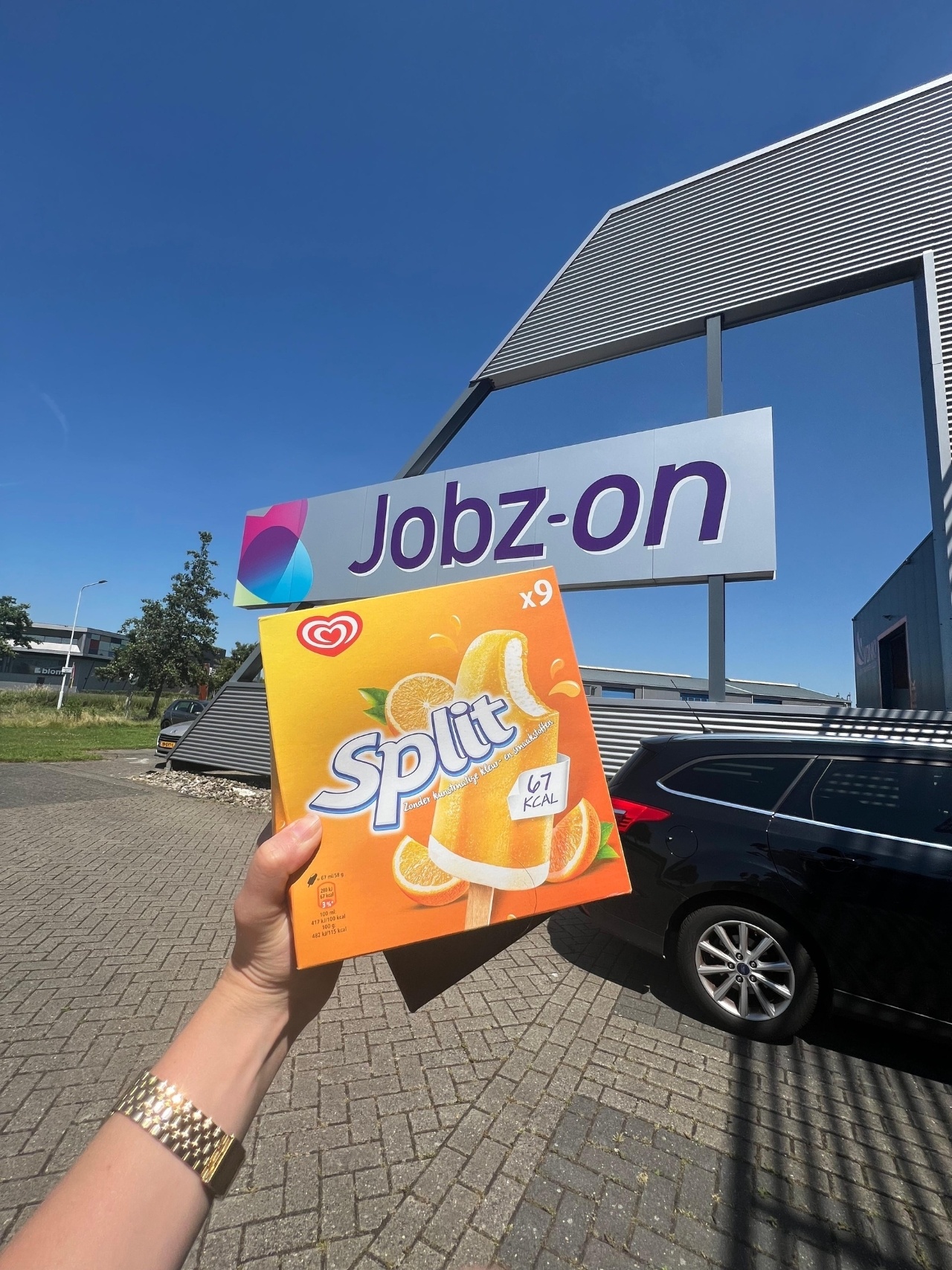 Lyda trotseerde de tropische temperaturen voor een klantbezoek, een mooie lead vanuit haar Netwerkend Friesland-clubje. Zo zie je maar: die vroege ochtenden werpen hun vruchten af! Ondertussen hielden de collega’s het hoofd koel onder de airco (inclusief de eeuwige discussie of die nu te warm of te koud stond). Bij terugkomst zorgde ze voor een verkoelende verrassing.