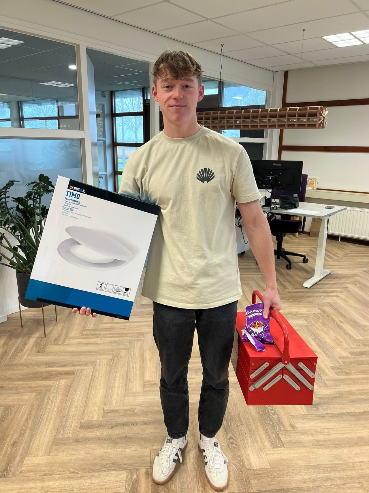 Geen werkplek ontkomt eraan: het vervangen van de wc-bril. Na jarenlange trouwe dienst was het moment eindelijk daar. Sydney trok zijn stoute klushandschoenen aan om de klus te klaren. Met een zakje klusdrop en een goedgevulde gereedschapskist kom je een heel eind… zou je denken. Helaas bleek onze wc-bril een uniek ontworpen exemplaar, waardoor we nog even geduld moeten hebben. Maar aan Sydney’s inzet zal het niet liggen!