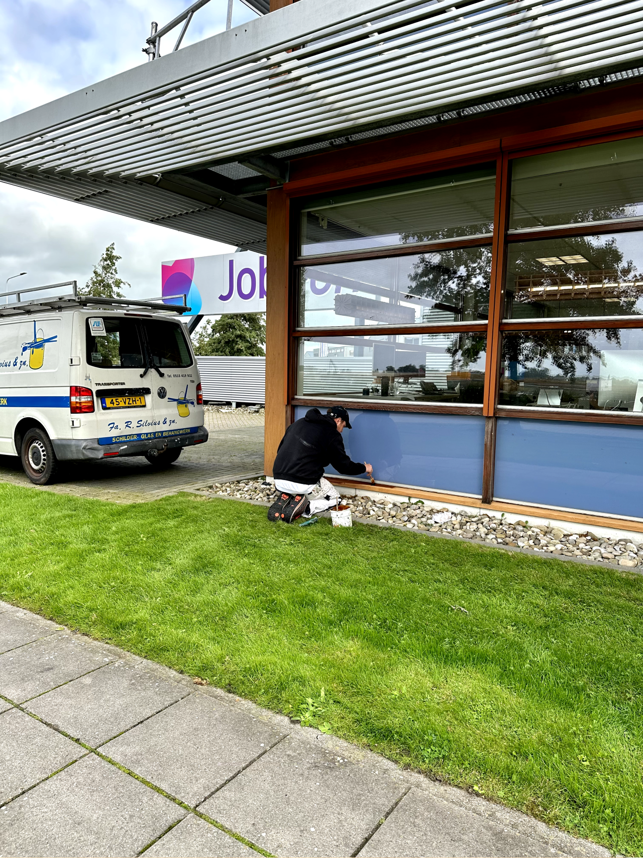 Om ons pand in Sneek fris en representatief te houden kwamen de afgelopen week de heren van Silvius & Zn naar de Zeilmakersstraat om het houtwerk aan de buitenkant te voorzien van een lik verf! Het was af en toe even wat puzzelen met steigers en parkeerplekken maar het resultaat mag er zijn, laat nu de herfst maar komen; wij zijn er klaar voor! De windhozen en stortregens trotseerden de mannen overigens de afgelopen week al, petje af!