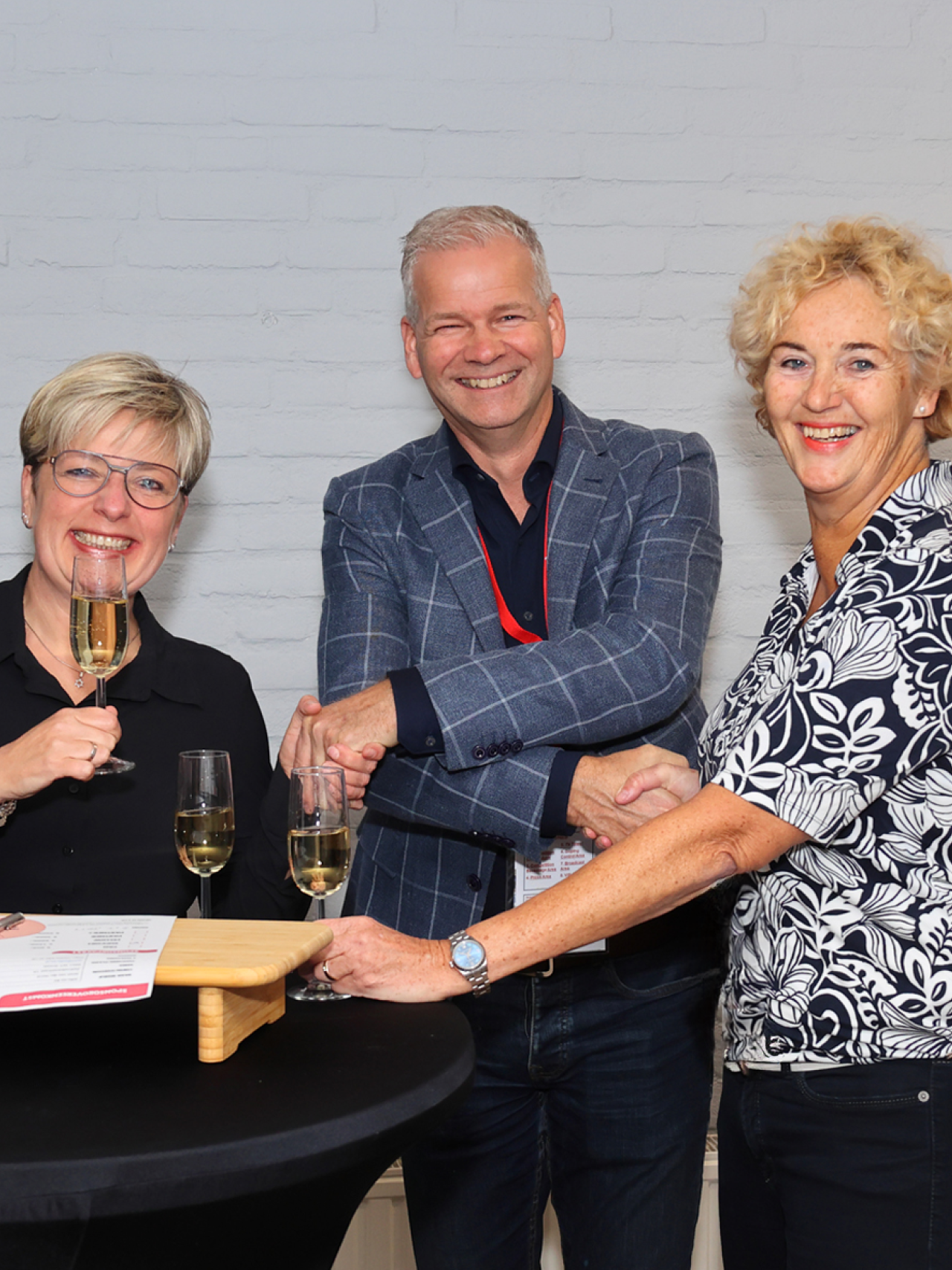 Janet en Helle waren aanwezig als trotse sponsors bij de Europacup-wedstrijd van VC Sneek Dames. Wat ze niet wisten, was dat er een officieel fotomoment zou zijn bij het tekenen van het nieuwe sponsorcontract. Voor de dames was dat geen probleem, zoals te zien is op de foto! Het was een mooie avond vol volleybal, met als enige teleurstelling dat de VC Sneek dames niet hebben gewonnen…