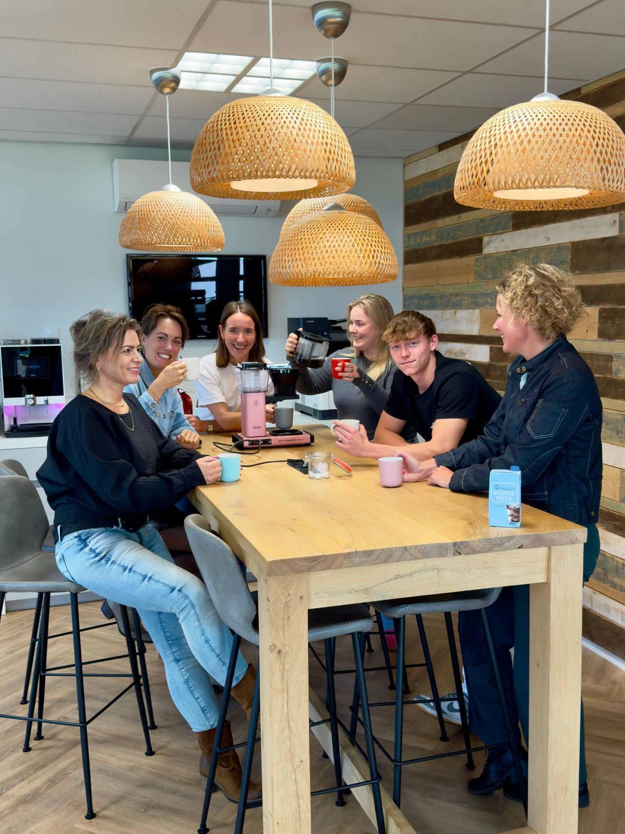 Volle agenda’s, rennen van meeting naar meeting… en voor je het weet is die ene collega die je even wilde spreken alweer foetsie. Want laten we eerlijk zijn: de beste gesprekken én ideeën ontstaan niet achter het bureau. Meestal dan ;) Koffie brengt mensen samen. Dit ervaarde Janet van dichtbij toen ze een paar weken geleden op bezoek was bij een bedrijf waar het koffiemoment heilig was. Dit bedrijf wilde – ondanks protest van de medewerkers - het dagelijkse koffiemoment afschaffen. Janet dacht meteen: ik wil zo’n koffiemoment! En zo bliezen we vorige week nieuw leven in onze koffiecultuur. Nu starten we iedere werkdag met een gezamenlijk bakkie pleur.