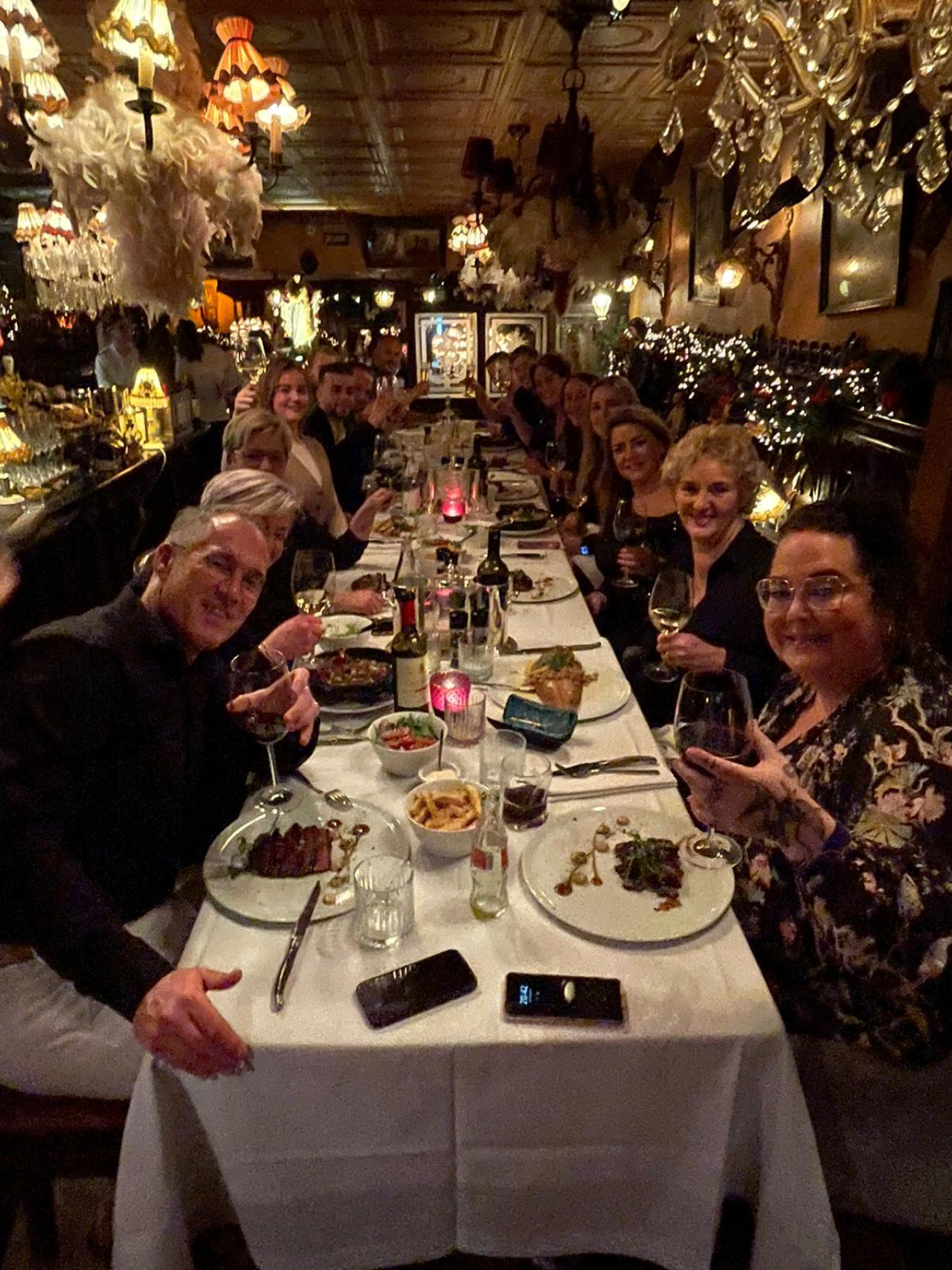 Tegen zevenen begon onze maag toch wel te rommelen dus hup, op naar 't Vaticaan. Wat een bijzonder en mooi restaurant! Eigenaar Sjoerd Schot had een prachtig menu voor ons samengesteld en samen met zijn team zorgde hij voor een heerlijke, culinaire afsluiter! Het was naast een ontzettend gezellige avond ook heel leuk om de partners van collega's eens ''in het echt'' te zien & te spreken, er ontstonden mooie verhalen! De kater kwam later maar, zoals Janet altijd zegt: 's Avonds een vrouw, s' ochtends een vrouw...ze zaten er weer om 09.00 de volgende ochtend.